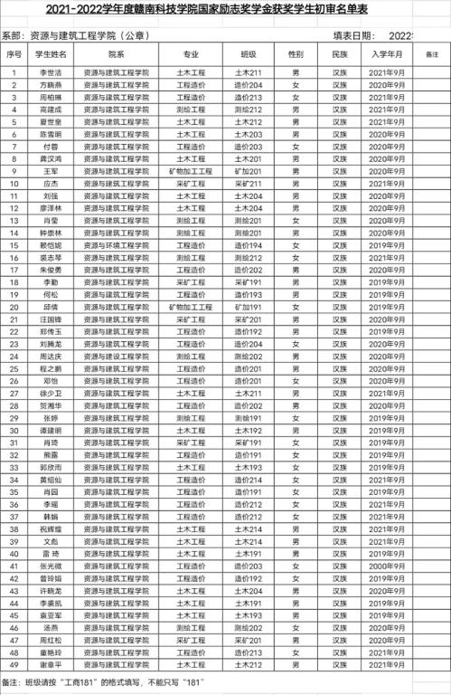 本网讯:资源与建筑工程学院(建设工程系)2021-2022学年国家励志奖学金获奖初审名单公示: