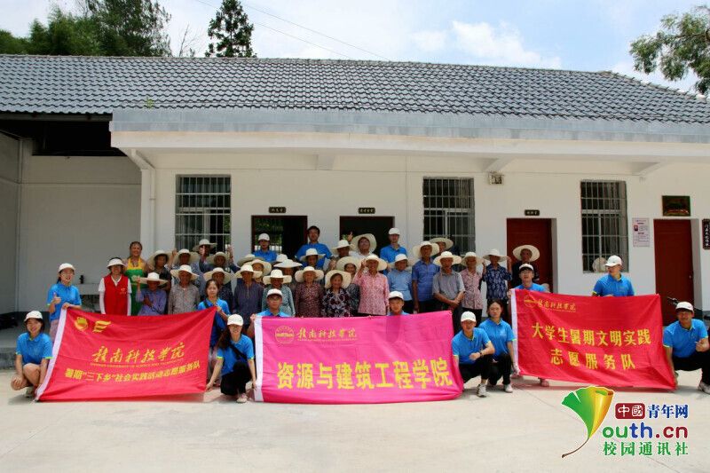 图片发自中青校园App图为广场舞村民、孩童与实践队队员合影留念。中国青年网通讯员 陈心怡 摄