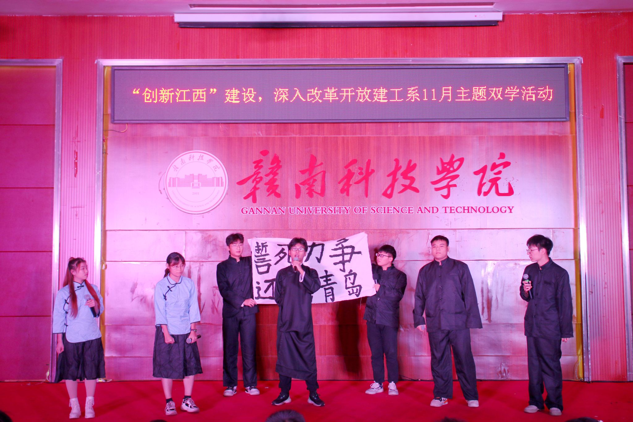 本网讯:11月27日晚,建设工程系在图书馆学术报告厅举行以“创新江西建设,深入改革开放”为主题的双学活动,建设工程系师生近三百人参与本次活动。