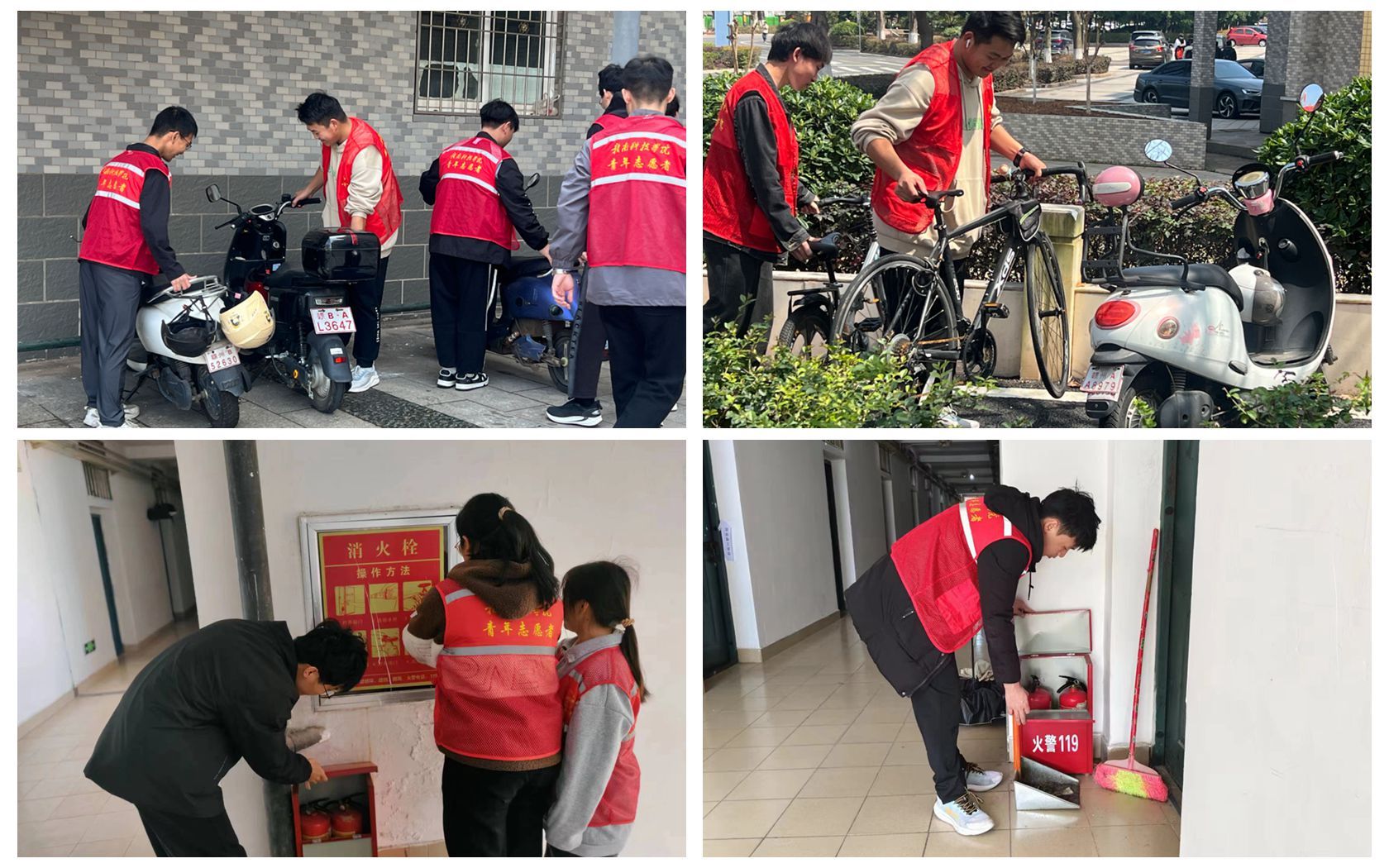 开展“秩序维护和消防检查”安全志愿服务。为进一步建立文明和谐平安的校园,77779193永利官网集团每周二定期组织党员和团员青年开展秩序维护和消防检查等志愿服务。3月12日下午,志愿者们在校园开展整理校园电动车违停摆放、检查是否存在“飞线”乱充现象,进行安全隐患排查。3月19日下午,志愿者们在宿舍楼道间对消防设施进行检查,核对日期是否有效,了解设备定期维护情况,同时对楼道间存在的安全隐患进行排查。此次活动有助于提高同学们的安全意识,为构建平安校园贡献一份力量。