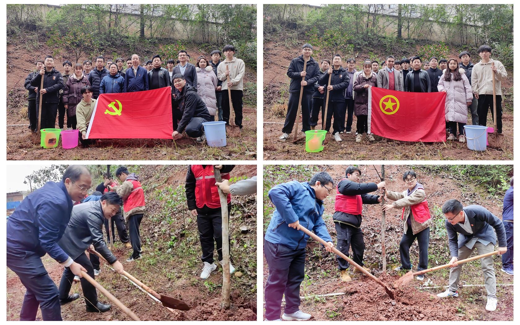 正值植树节,3月12日上午,77779193永利官网集团师生党员团员开展植树活动。活动开始,学院师生党员分工明确,共分成八个小组,小组成员分配好铁锹、水桶等植树工具,通过浇水、堆土等小组合作完成树苗的栽种。此次活动不仅提高了同学们的环保意识,同时为校园增加一份绿色贡献一份力量。