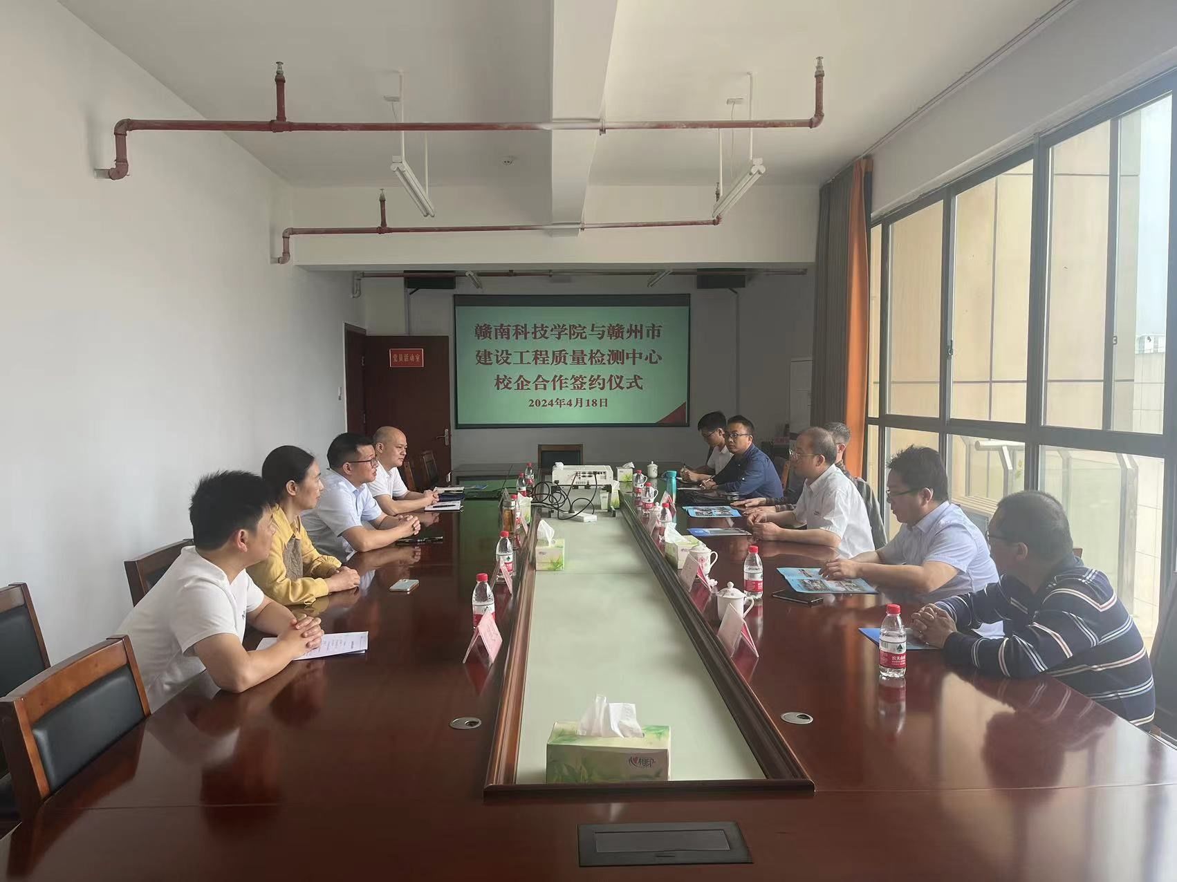 会议伊始,赣州市建设工程质量检测中心主任邱峰对我院一行人的到来表示热烈欢迎。他指出,借以此次签约为契机,充分发挥双方各自优势,继续深化校企合作。通过建立“实践基地”等一系列措施,进一步做好“产学研培”,实现资源共享、共同发展,把每一个合作项目落到实处,助力双方蓬勃发展!