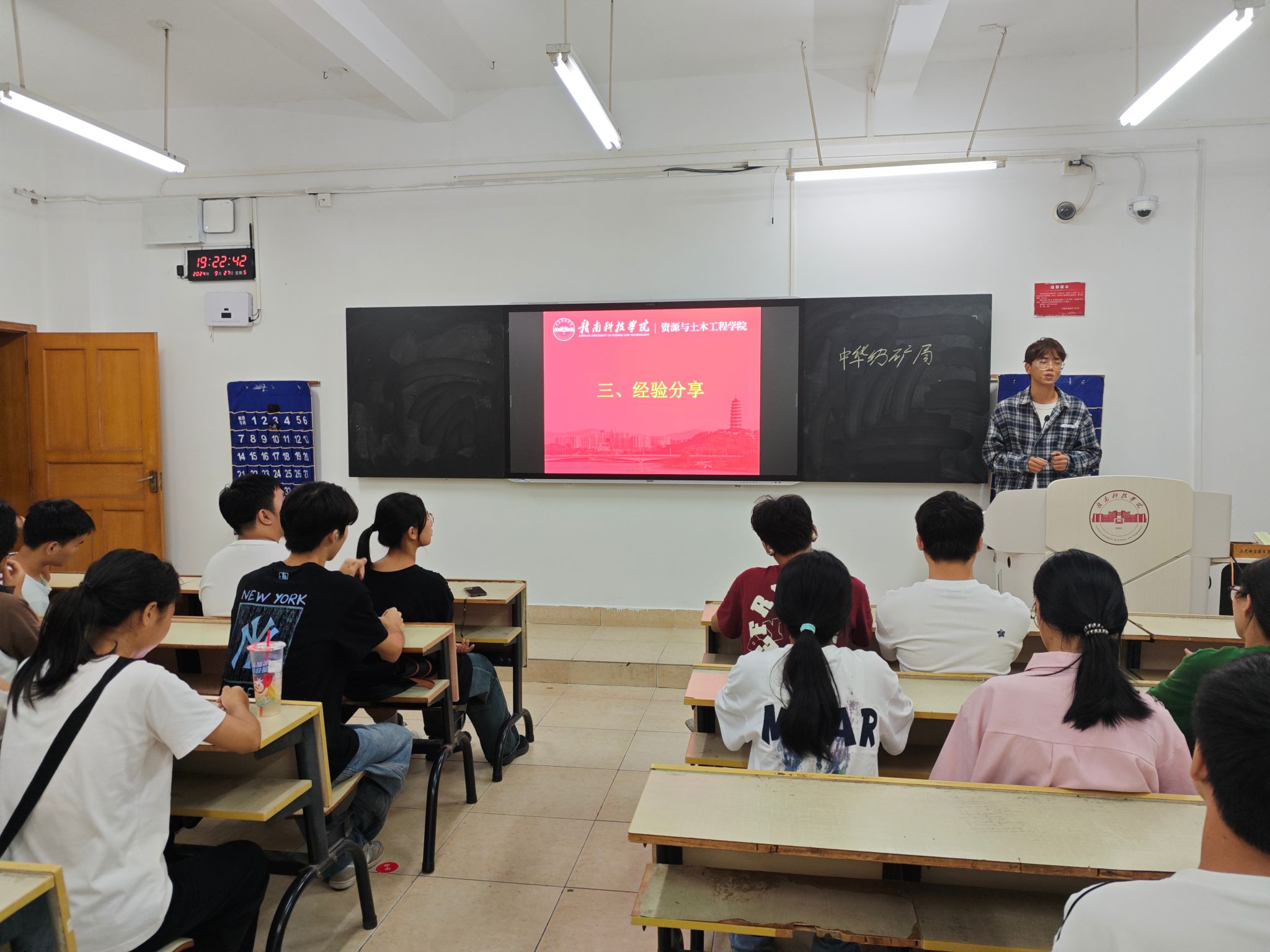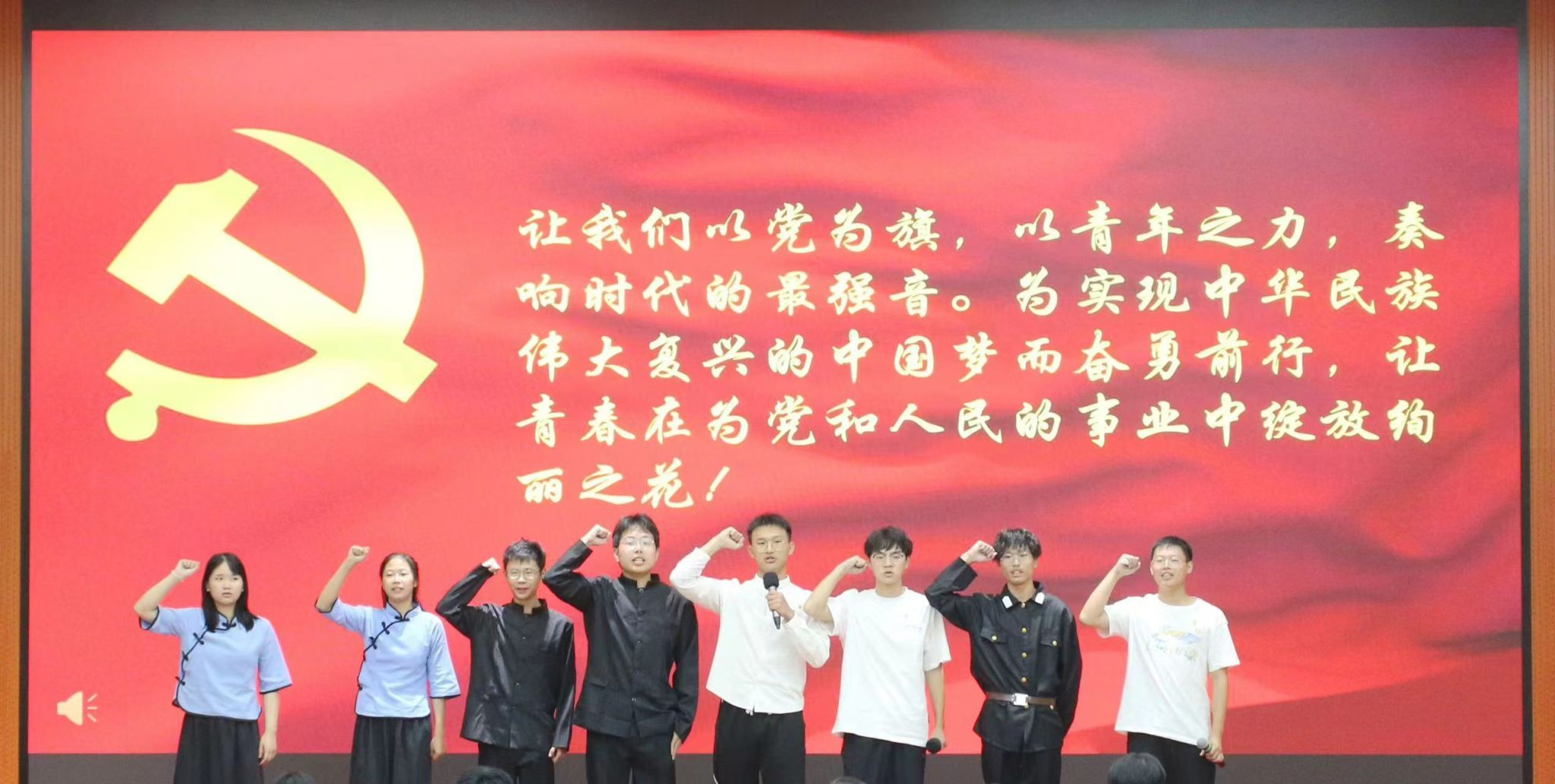 本次比赛参赛队伍共12支,各队伍主讲人按顺序依次进行微团课授课比赛。比赛现场,各主讲人巧妙运用生动鲜活的案例,通过课堂讲授、案例分析、事迹分享、情景再现等方式进行授课。采矿231班刘钊等同学带来的团课《青年与时代的交响》从五四精神出发,鼓励同学们学习并传承五四精神,以无畏勇气和创新精神,在时代浪潮中奋勇前行。现场氛围热烈,掌声不断。