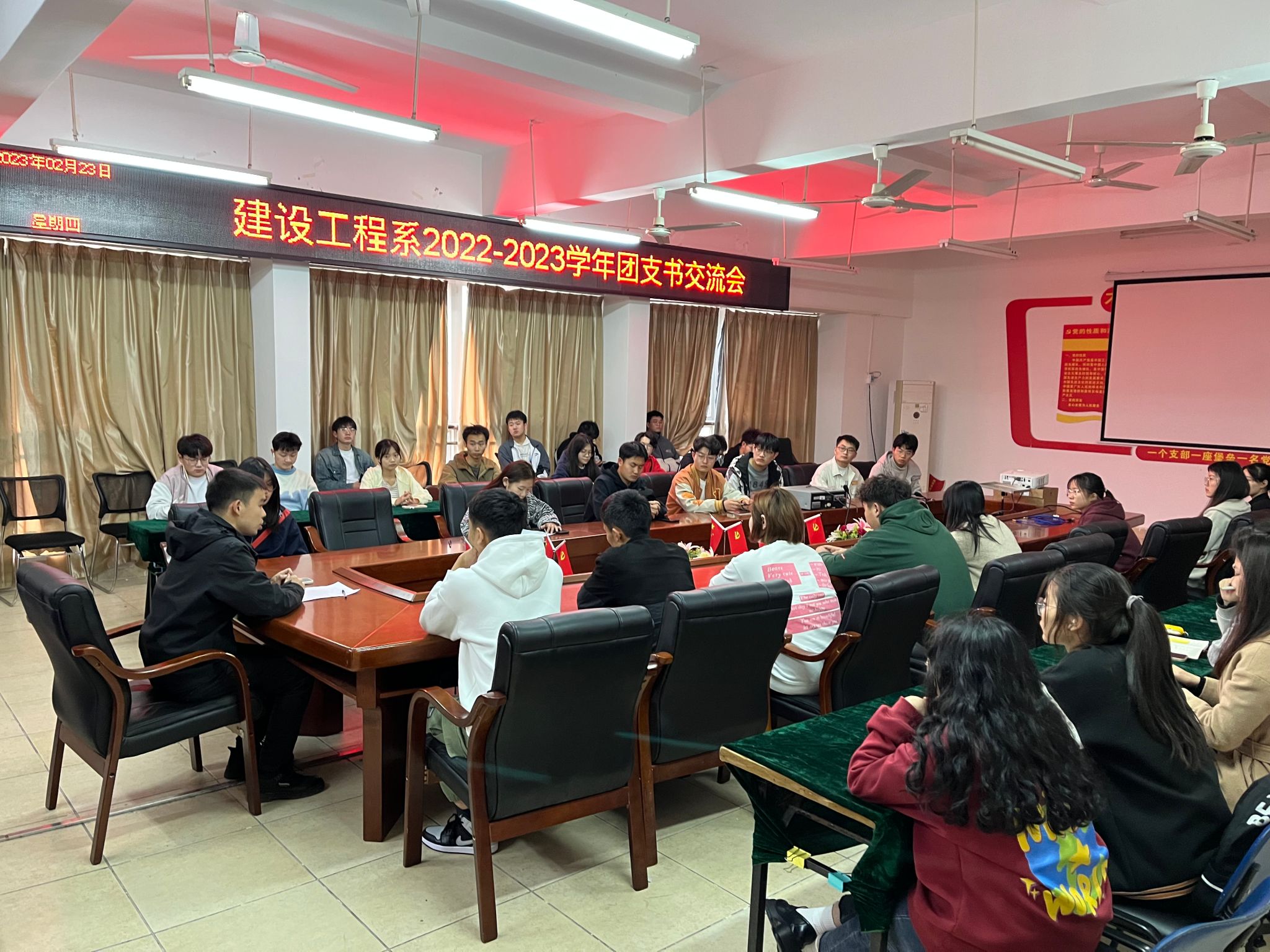 本网讯:为深入贯彻落实习近平总书记关于青年工作的重要思想,深刻领会团员青年的时代责任,建设工程系于2月23日在主教Z713召开了2022-2023学年第二学期团支书交流会,系团总支书记刘辉和各班团支书参与本次会议。