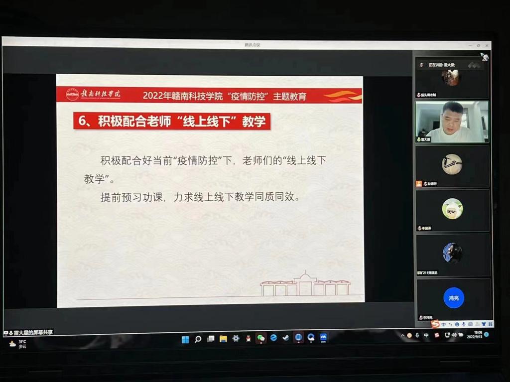 本网讯:当前,疫情防控情况严峻,为加强同学们对当前疫情形势的了解,提高同学们的疫情防控意识。建设工程系于9月12日-13日,组织全部班级召开“疫情防控”主题教育班会。