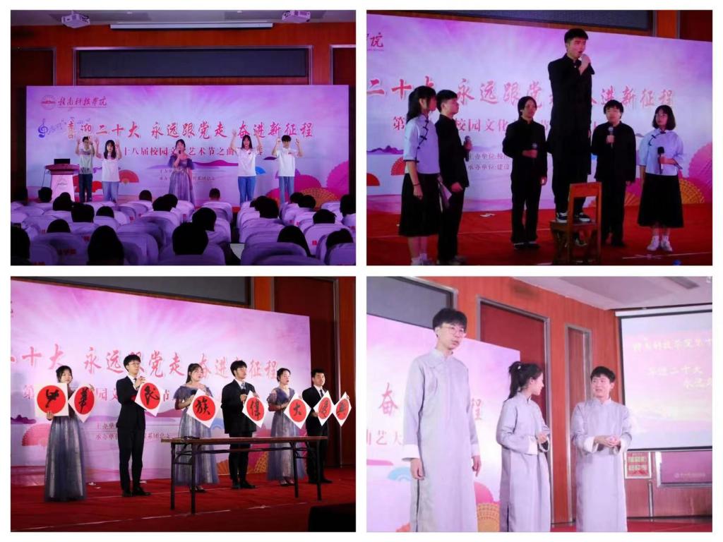 此次曲艺大赛内容精彩,节目类型丰富多彩。建设工程系的《为了你》讲述了疫情中那些不可或缺的“平凡英雄”,他们默默无闻,无私奉献;机电工程系的《破晓》谱写了一首气吞山河的英雄赞歌,他们敢于冲破拂晓,带来光明;信息工程系的《火柴》表现了抗战期间,信息传递间情报员与监听员之间的斗争;人文科学系的《百年新青年》展现了中国青年在中国共产党领导下不忘初心、砥砺前行;经济管理系的《扶贫那些事》描绘了地方党政机关一心一意为人民服务的精神,他们凝心聚力,不懈奋斗。