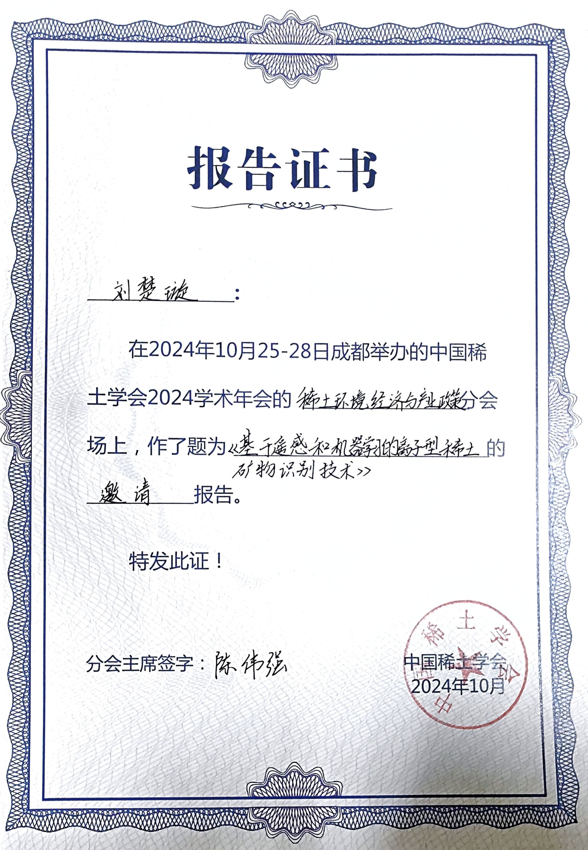 本网讯:10月25日至28日,中国稀土学会在四川省成都市举办“中国稀土学会2024学术年会”。会议由中国稀土学会稀土环境经济与政策专业委员会,中国科学院城市环境研究所,中国地质大学(北京)等单位联合主办,特设“稀土环境经济与产业政策”学术分会。77779193永利官网集团教师王茜茜和测绘231班刘楚璇同学参加此次学术汇报。