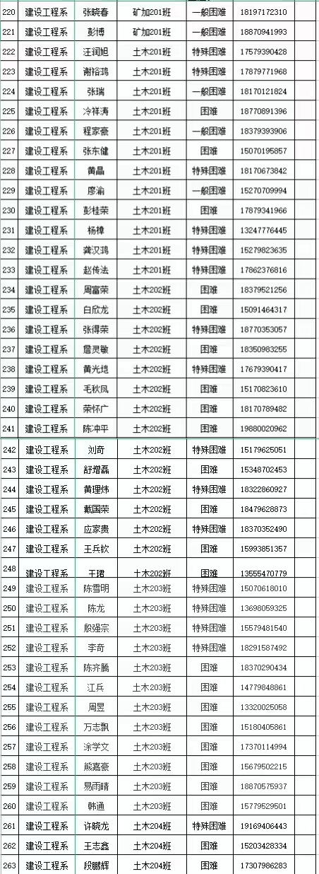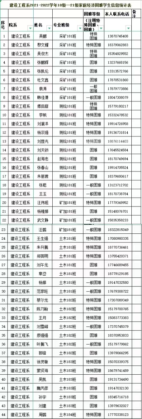 本网讯:建设工程系(资源与建筑工程学院)2021-2022学年18级—21级家庭经济困难学生名单公示: