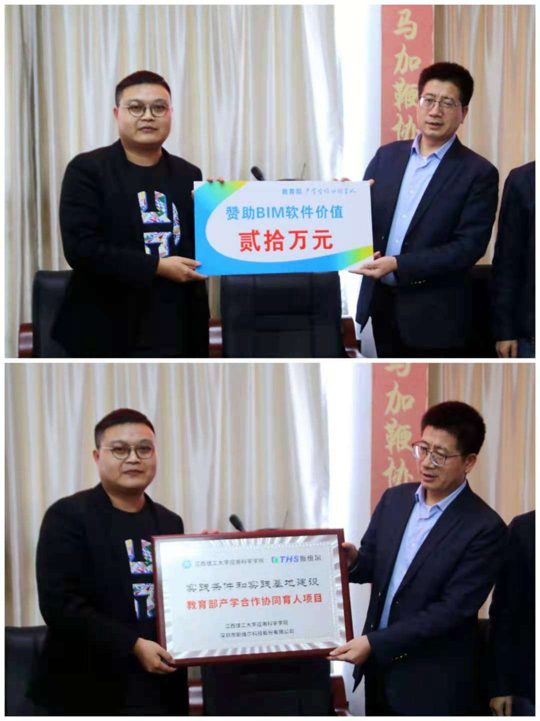 代靖怡介绍了教育部产学研协同育人项目的重要意义,向斯维尔科技有限公司对系部教学实践提供的支持和帮助表示感谢。捐赠仪式由三部分组成,首先付玉华和饶英凯对产学合作协同育人项目进行了授牌,随后深圳市斯维尔科技股份有限公司江西区域经理饶英凯代表企业向建设工程系捐赠了价值20万元的BIM软件,最后卢志刚和饶英凯进行校企合作签约,活动的开展不仅是校企合作的重要见证,更是企业对学院工作的肯定与支持。