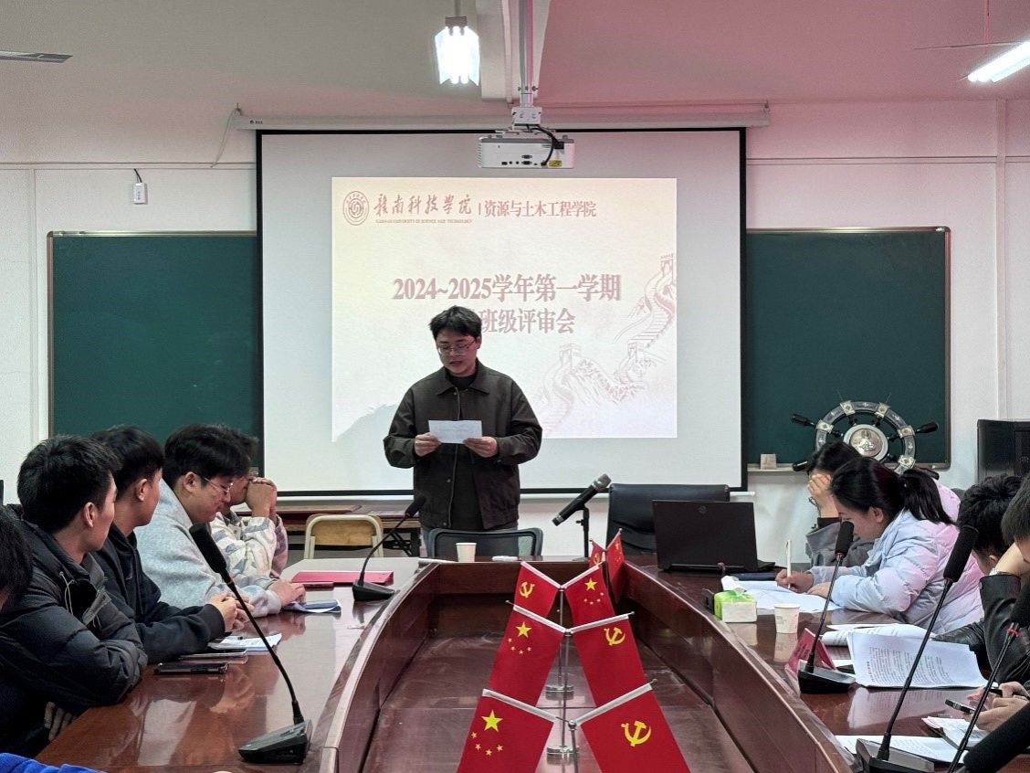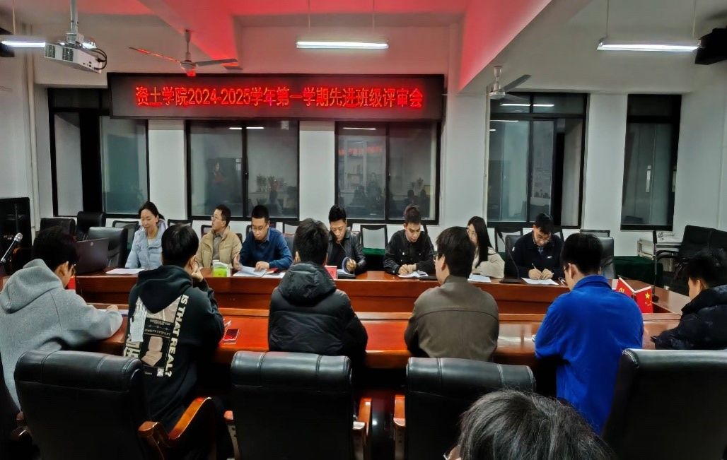 本网讯:为进一步加强学风建设,通过选树先进班级,充分发挥学风先进集体和榜样的示范引领作用,从而带动全院学风进一步提升,3月17日晚,资土学院在逸夫楼A505开展2024-2025学年第一学期先进班级终评会,学院党委委员涂黎明及全体辅导员参加了本次评选活动。