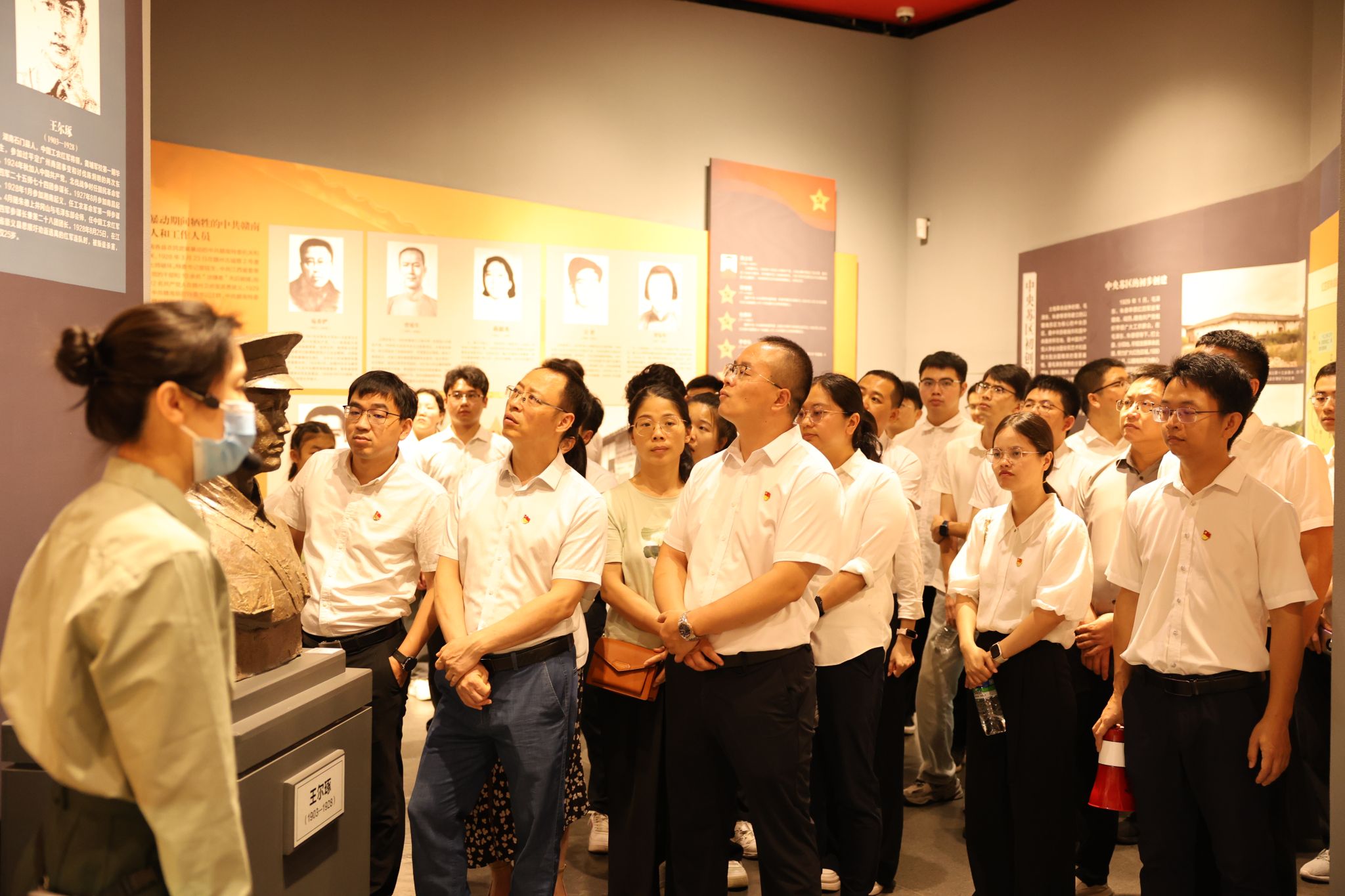 全体师生党员们来到赣南烈士纪念堂,馆内陈列的珍贵文物、历史图片和文献资料,展现了革命先烈们艰苦卓绝的斗争历程。师生们认真聆听讲解,不时驻足凝视,深刻感受那段波澜壮阔的革命岁月。