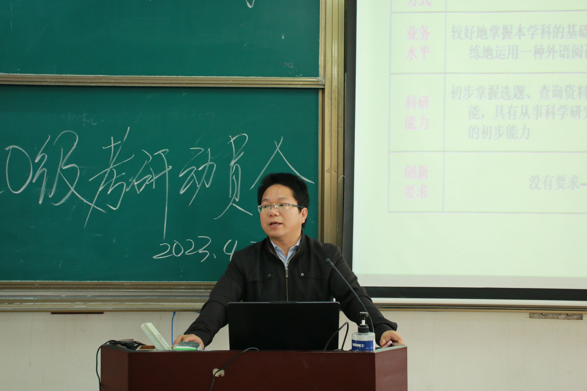 会上,卢志刚简述了研究生教育基本情况,用详实的数据分析了近几年竞争逐渐加剧的考研形势,从近年来的考录比、不同科目的分数线等各个方面分析考研的必要性,从考研流程、近年我系考研录取率等介绍了考研政策,帮助大家根据实际情况找准定位,为在场同学分析自身考研优劣条件并提供考研备考策略,希望同学们通过认真有效的备考,都能在明年的考研中成功上岸。