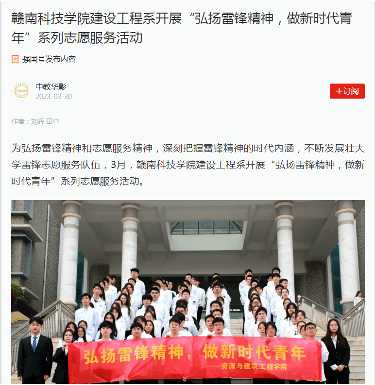学习强国中教华影3月30日电(通讯员:刘辉 田萱):为弘扬雷锋精神和志愿服务精神,深刻把握雷锋精神的时代内涵,不断发展壮大学雷锋志愿服务队伍,3月,永利集团建设工程系开展“弘扬雷锋精神,做新时代青年”系列志愿服务活动。