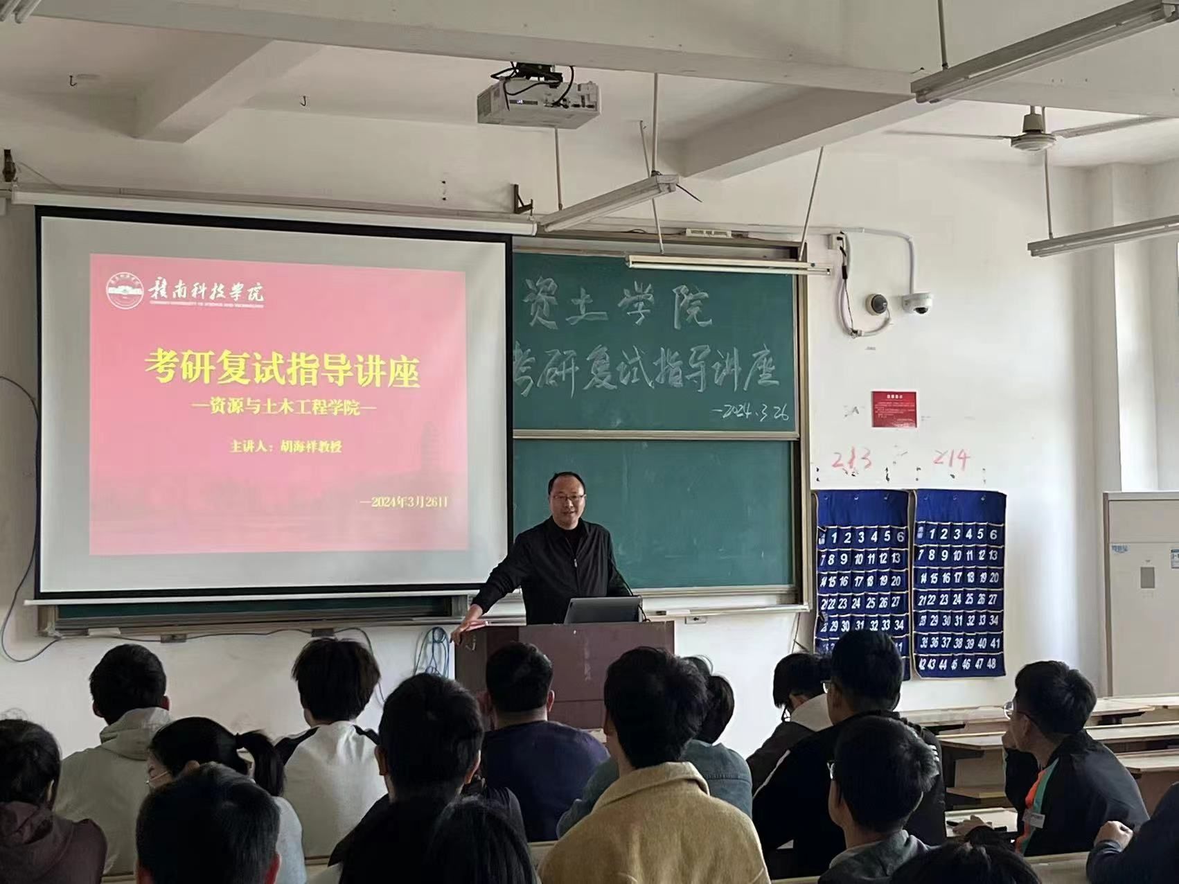 本网讯:为增强考研学生对考研复试的认知,促进考研学生更好地了解和充分准备考研的复试与调剂流程,3月26日下午,77779193永利官网集团在崇善楼Z103教室举办考研复试指导讲座。此次讲座由胡海祥教授主讲,70余名考研学生参与。对学生们关心的考研复试问题进行了详细的解答,资土学院考研复试学生积极参与。