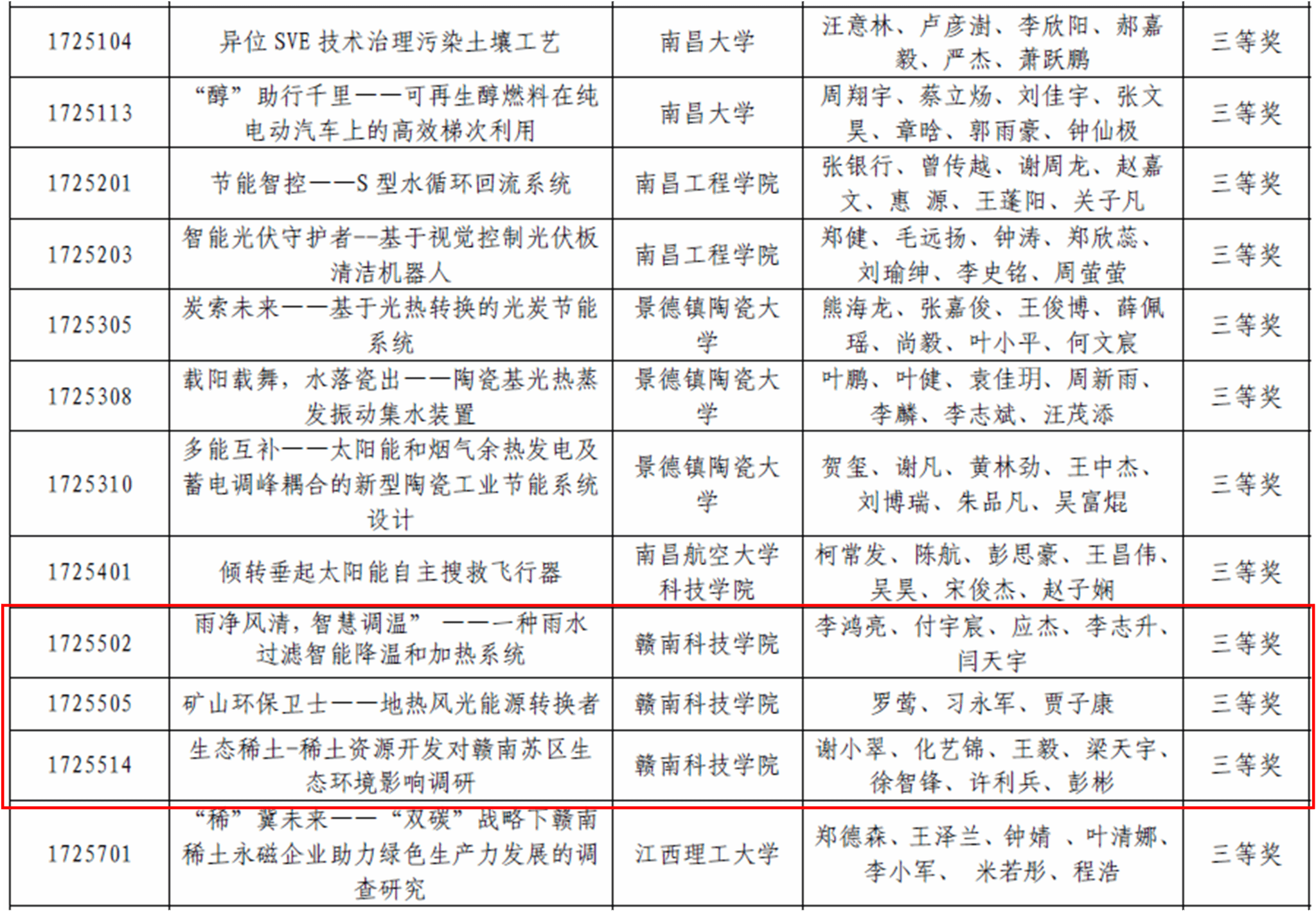 由77779193永利官网集团雷大星、刘波老师指导的李鸿亮、付宇宸、应杰、李志升、闫天宇同学完成科技作品“雨净风清,智慧调温一种雨水过滤智能降温和加热系统”,以及雷大星、胡健老师指导的罗莺、习永军、贾子康同学完成的科技作品“矿山环保卫士一一地热风光能源转换者”,邱森和孔靖宇老师指导的谢小翠、化艺锦、王毅、梁天宇、徐智锋、许利兵、彭彬同学完成的实践调查类作品“生态稀土—稀土资源开发对赣南苏区生态环境影响调研”,从众多作品中脱颖而出,均斩获全国三等奖。这三件作品立足生产实际,体现了我校学子勇于创新、敢于实践的精神风貌。