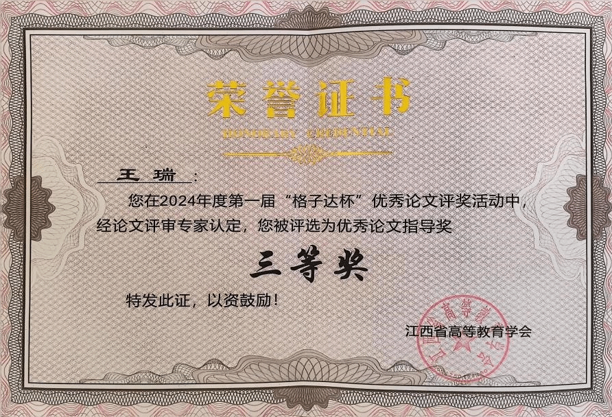 此次我校师生在江西省首届(2024届)“格子达杯”优秀本科毕业论文评选活动中的获奖,是对我校教育教学工作和人才培养成果的肯定,也将激励更多的师生积极参与到科研创新和教学活动中,不断提高我校的教育教学水平和综合实力。