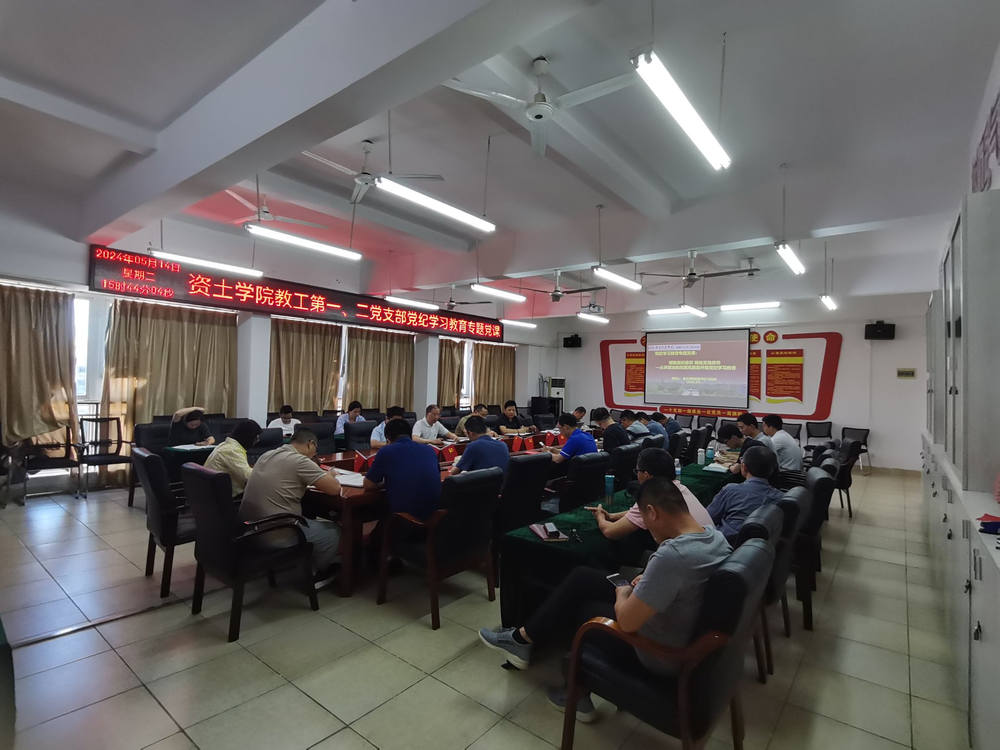 本网讯:为了增强党纪意识 锤炼党性修养。5月14号下午,77779193永利官网集团党委书记刘俊峰在崇善楼Z713为资土学院教工第一、二党支部讲授了党纪学习教育专题党课,全体教工党员聆听本次党课。