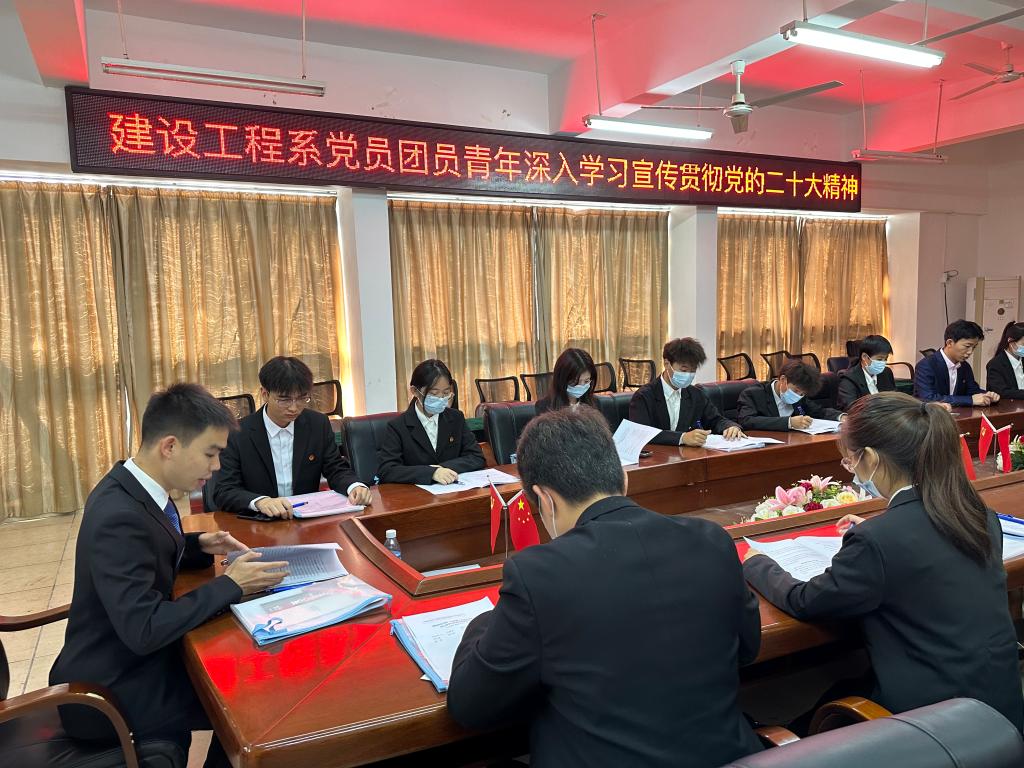 党员团员集体学习党的二十大。建设工程系组织各支部党员团员青年集体学习党的二十大精神,深化永远跟党走的意识,把爱国精神与集体主义教育深入到广大青年中去。