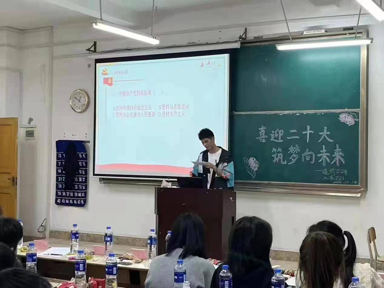 主题团日与二十大专题学习。建工系组织各班级代表进行以“学习二十大,奋进新征程,建功新时代”为实践的主题团日活动,同时进行专题学习,进一步引导同学们认识学习二十大精神。