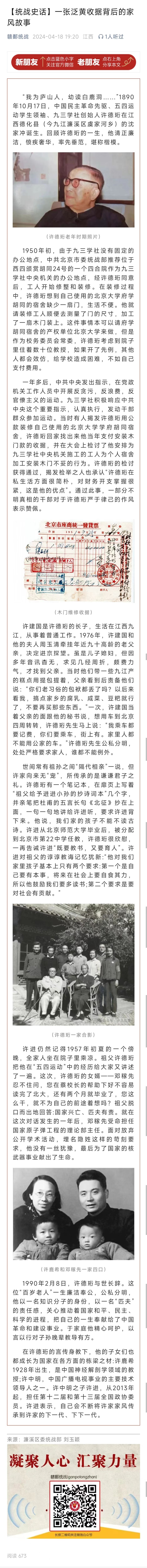 【统战史话】一张泛黄收据背后的家风故事