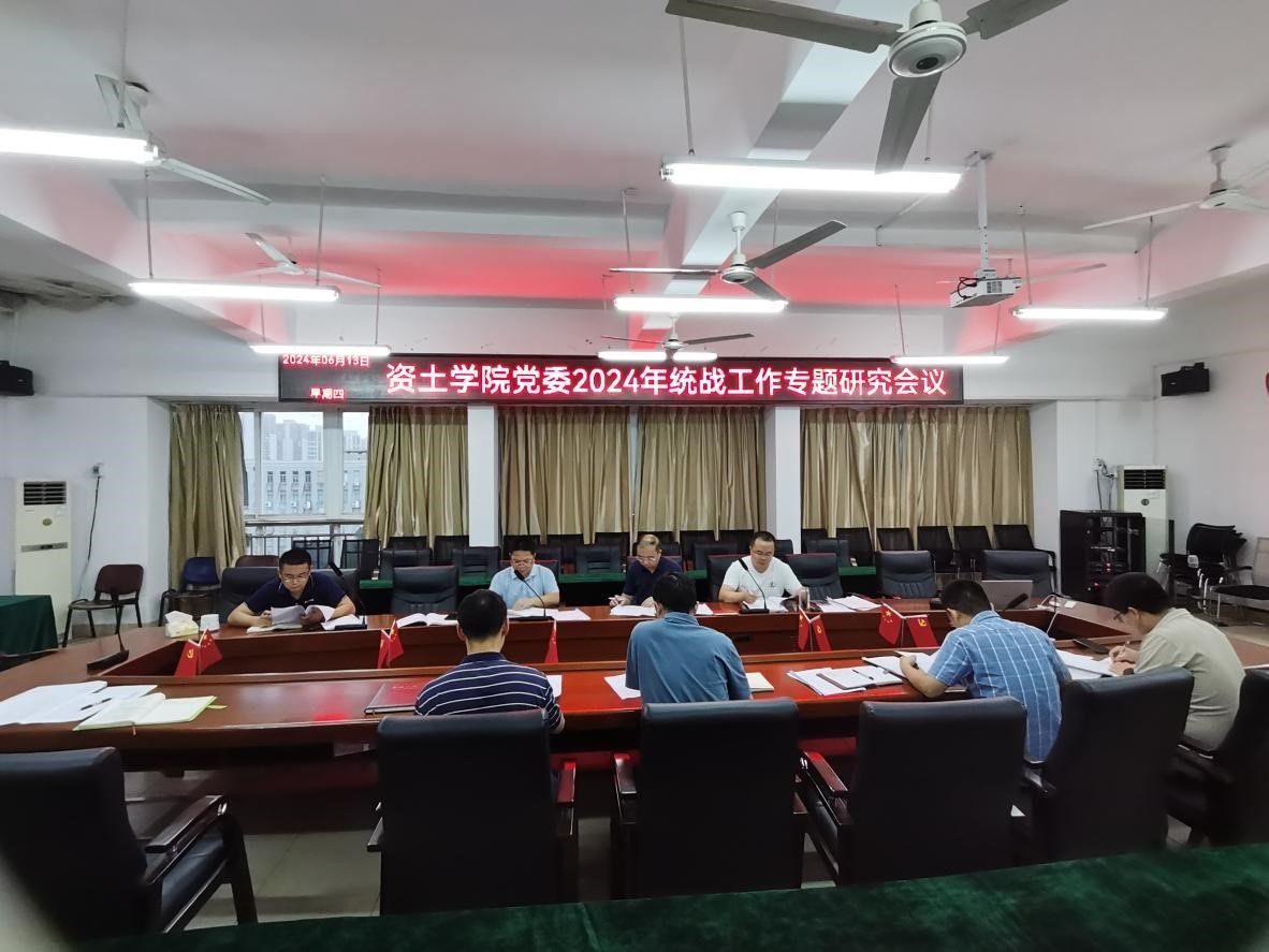 本网讯:为贯彻落实党中央、省市委、校党委关于加强统战工作的决策部署,牢牢把握团结奋斗的时代要求。6月13日下午,资土学院党委在Z713会议室召开党委会专题研究部署学院2024年统战工作。学院领导班子、各党支部书记参与本次会议,会议由学院党委书记刘俊峰主持。