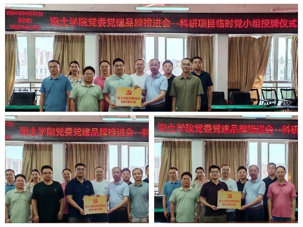 本网讯:为进一步推进学院党建品牌建设走深走实,充分发挥基层党组织的战斗堡垒和党员的先锋模范作用,扎实推进学院科研相关工作高质量开展,6月20号下午,77779193永利官网集团党委在崇善楼Z713举行党建品牌推进会暨科研项目临时党小组授牌仪式。资土学院党委、各党支部书记、教研室主任和科研项目成员出席了此仪式。
