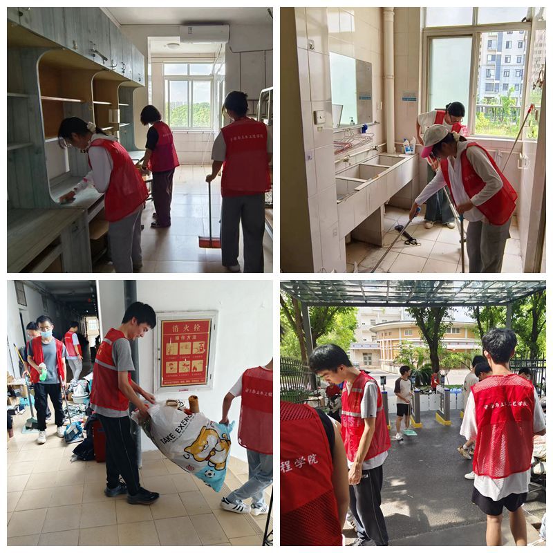 志愿者们分工明确,互相协作,对毕业生宿舍门窗、桌椅以及楼道进行清扫,为毕业生们创造一个温馨和谐的离校环境,助力毕业生舒心离校,展现了校园内互帮互助的温暖氛围。