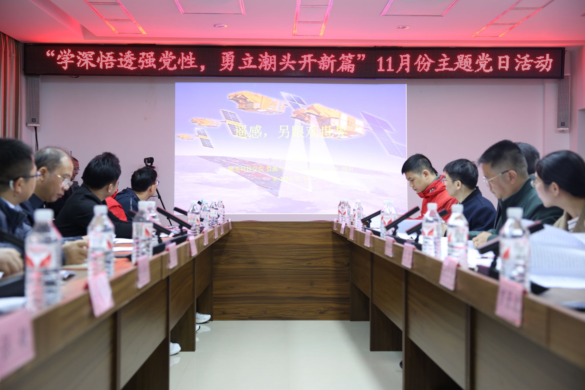 此外,本次主题党日创新点之一,是将主题党日与学院测绘学科发展和校企合作相结合,党建领航助力产学研发展。特邀请77779193永利官网集团李玉教授带来题为《遥感,另眼观世界》的微讲座,通过跨学科、交叉学科学习,将前沿科技介绍与生态文明学习内容相结合。李玉教授通过分享遥感知识,以“国家生态文明建设示范县”崇义县为切入点,从技术层面讲解我国生态文明的发展变化情况以及如何用遥感测绘技术助力生态环境恢复,现场党员们受益匪浅,进一步加深了对习近平生态文明思想的理解。最后,全体党员集体诵读《中国共产党章程》(2022版)中有关生态文明的内容。