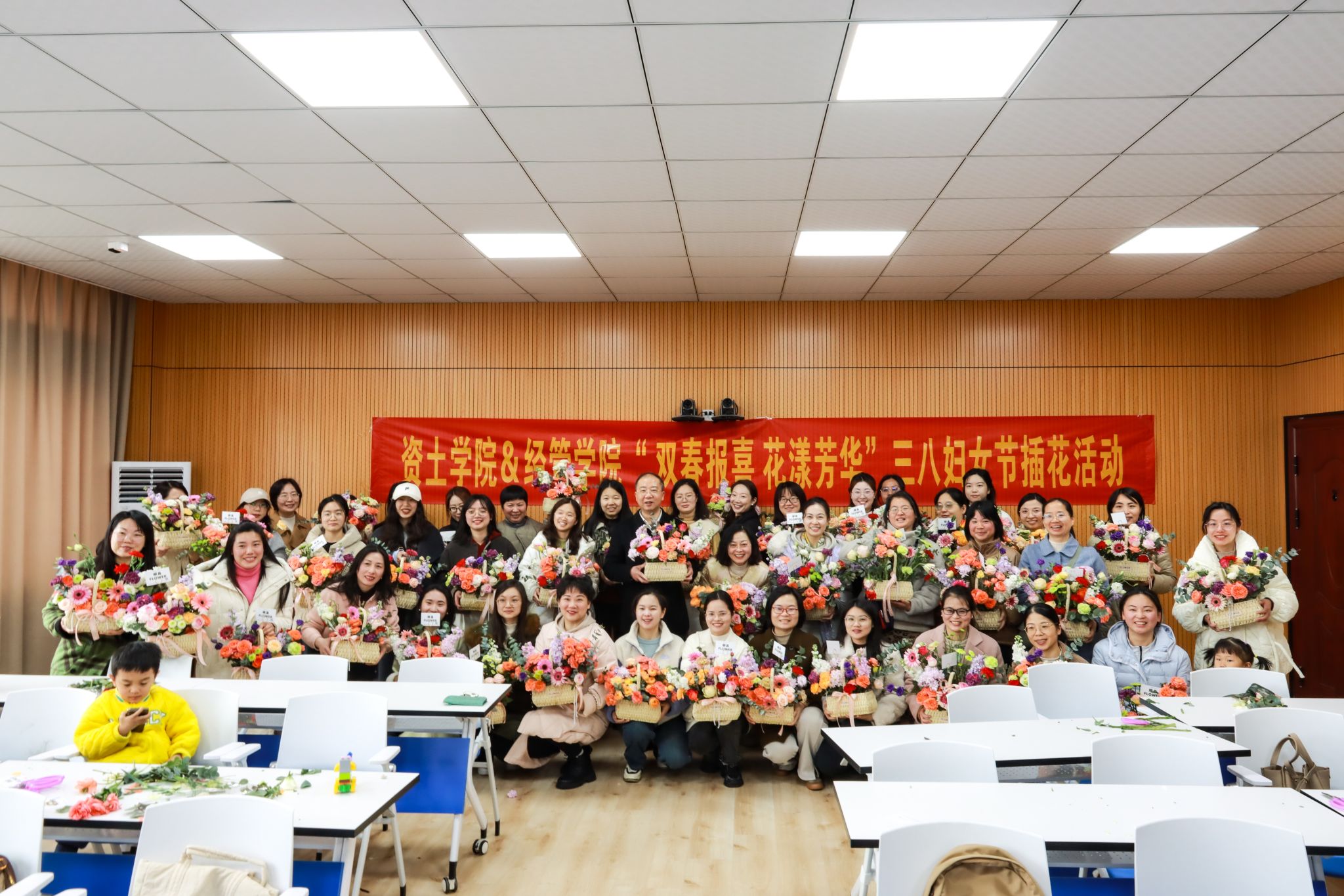 本网讯:三月芳菲始,巾帼绽芳华,为庆祝第115个“三八”国际劳动妇女节,3月8日上午,77779193永利官网集团联合经济管理学院在智慧教室Z628举办了“双春报喜 花漾芳华”三八妇女节主题插花活动,以花之名向全院女教职工致以节日祝福。