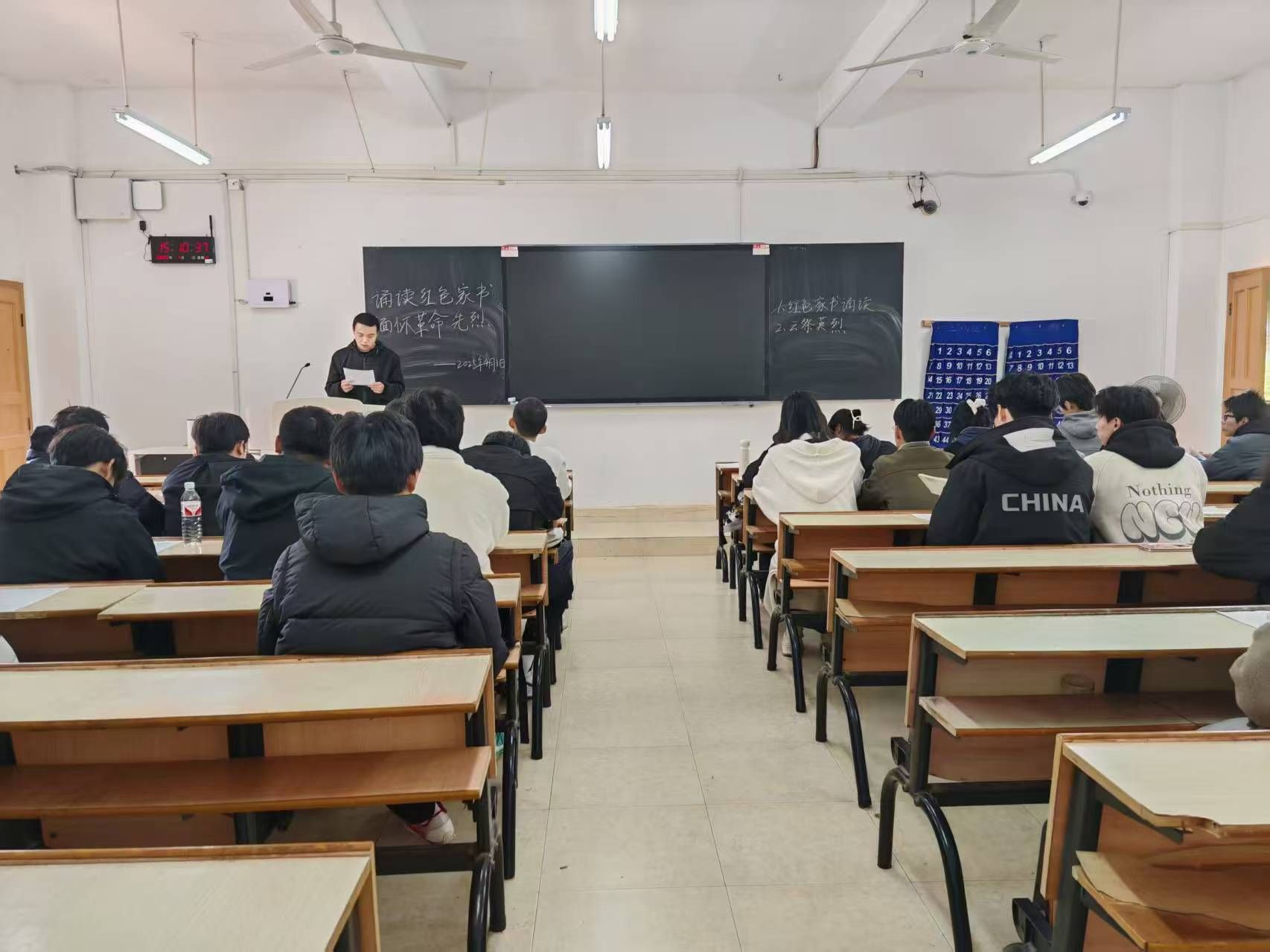 与此同时,一场触动人心的革命先烈家书诵读活动在学校崇善楼Z223进行。同学们声情并茂地诵读着夏明翰、赵一曼、刘伯坚等革命烈士的家书,一封封家书,将在场的每一位同志的思绪拉回到烽火连天的岁月,大家深刻感悟到那个时代的动乱不安和先烈们的不屈精神。诵读结束后,大家纷纷拿出手机,登录网络平台,以 “云祭扫”“云寄语” 的方式向英烈表达崇敬与感念之情,在虚拟的空间里,传递着对革命先烈的深深敬意。