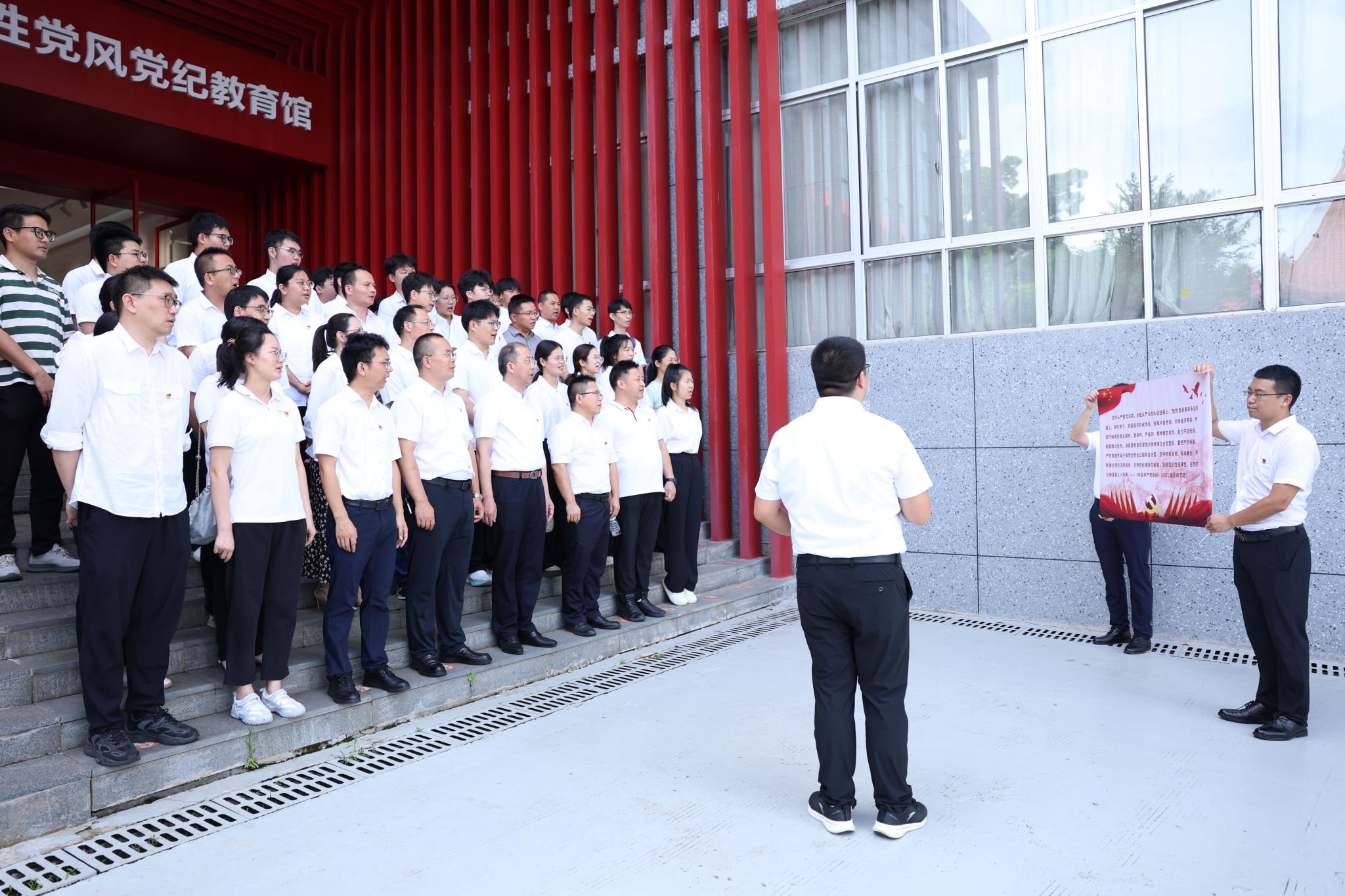 在讲解员的引导下,师生党员们驻足观看,认真聆听,通过参观“信念坚定”“政治灵魂”“作风过硬”“聚力凝心”等五个展厅,观看廉政警示教育片,师生党员们进一步了解了中国共产党在不同历史时期坚持锤炼党性、净化党风、严明党纪的伟大实践。柯丹丹、林颖同志作学习交流发言,号召全体党员要带头遵守廉洁纪律,自觉抵制不正之风,切实做到知敬畏、存戒惧、守底线。活动最后,全体党员重温入党誓词,牢记初心使命。