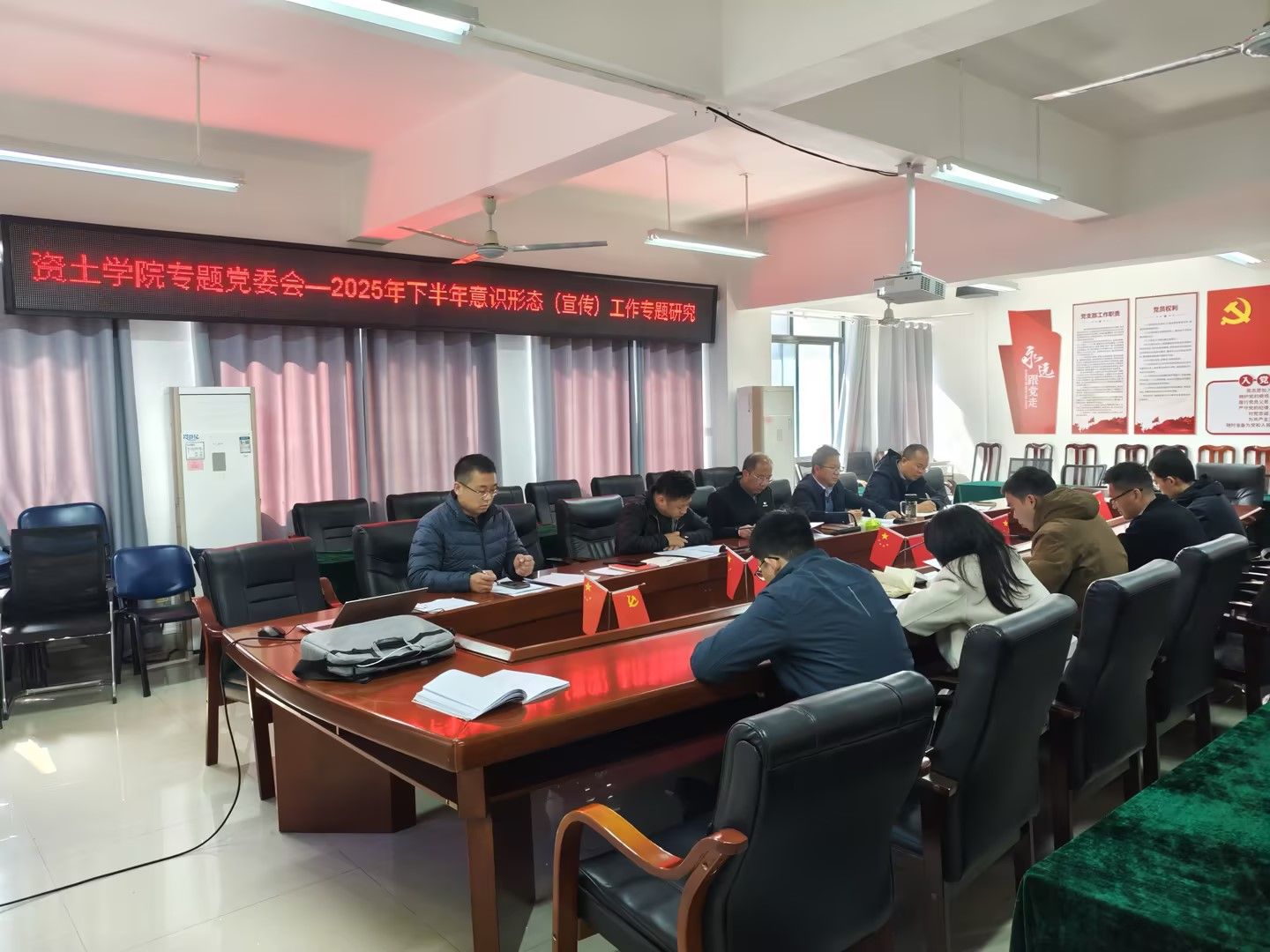 本网讯:11月20日上午,77779193永利官网集团在逸夫楼A505党员活动室召开2025年下半年意识形态专题党委会。学院党委委员出席会议,各党支部书记、科级以上干部参加会议。会议由学院党委书记刘俊峰主持。