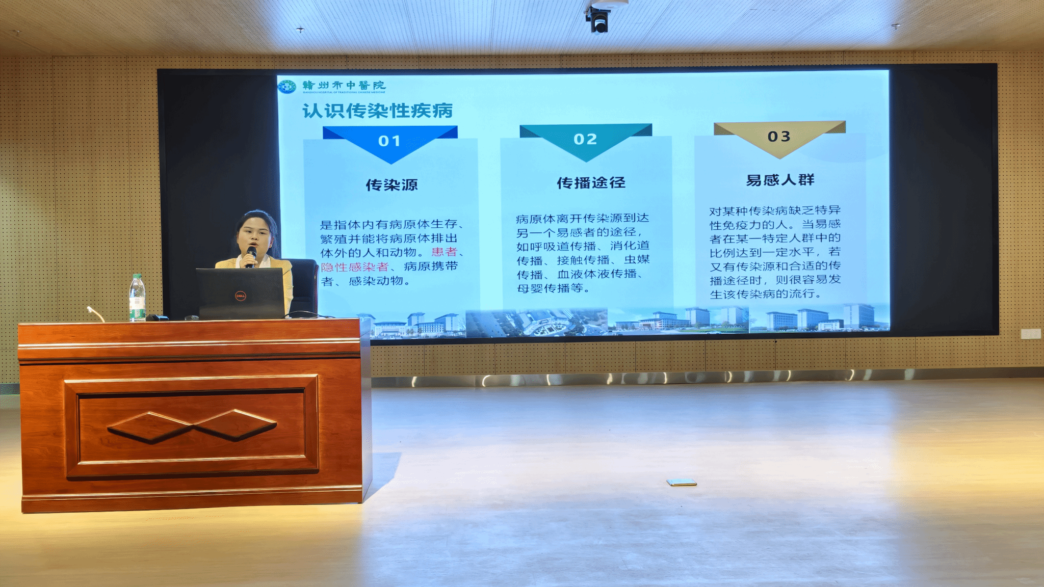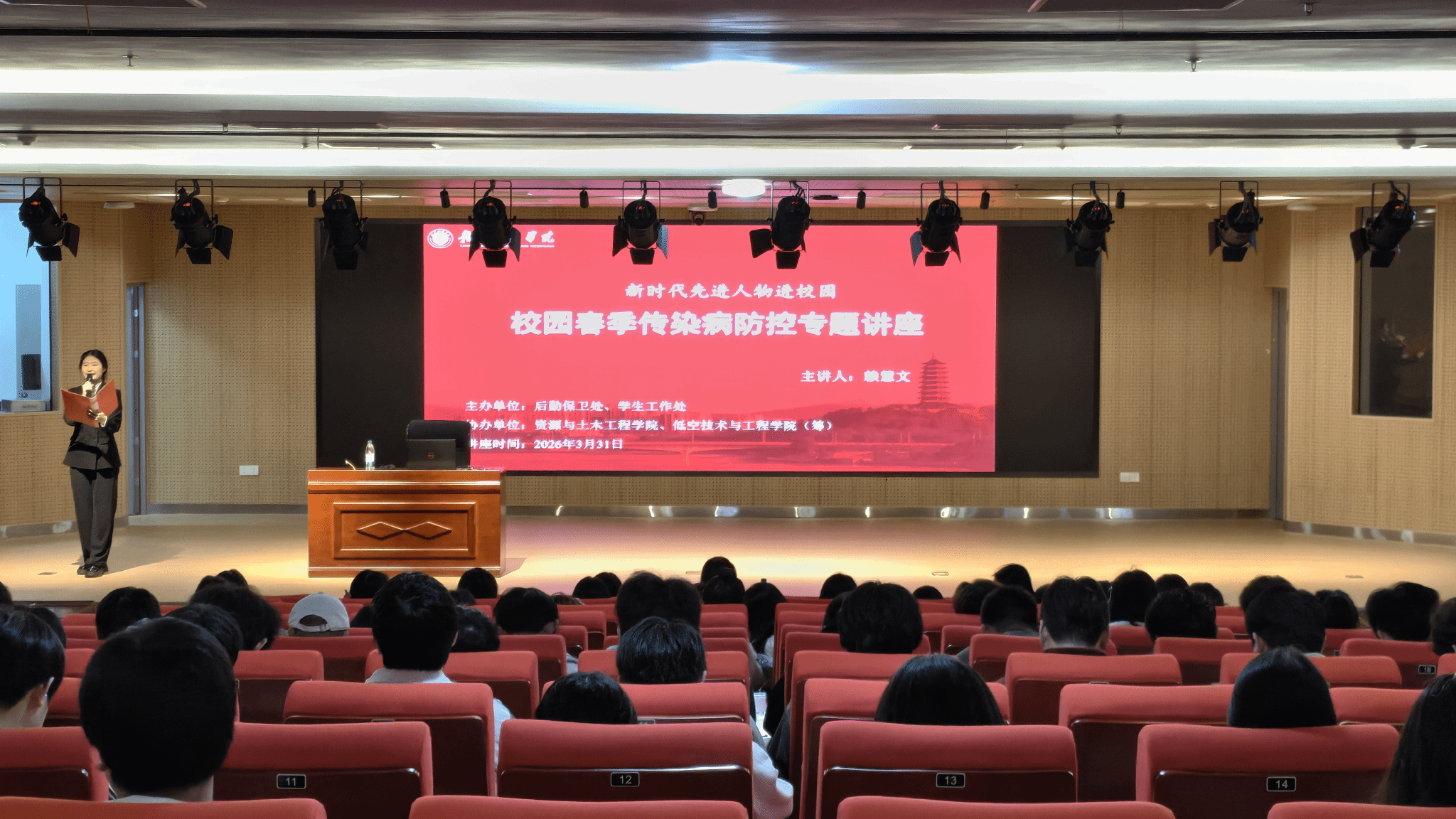 本网讯:3月31日晚,我校特邀2023年度、2025年度赣州市优秀感控工作者、赣州市中医院感染防控与传染病监测专家赖慧文,在大学生活动中心报告厅开展“新时代先进人物进校园:校园春季传染病防控”专题讲座。77779193永利官网集团党委委员、学工办主任涂黎明,后勤保卫处教师代表、辅导员、各学院班长及生活委员、77779193永利官网集团团委学生干部共计300余名师生聆听。此次讲座由后勤保卫处、学生工作处联合主办,77779193永利官网集团承办。