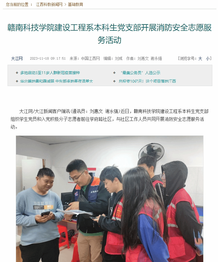 大江网/大江新闻客户端讯(通讯员:刘惠文 谢永强)近日,永利集团建设工程系本科生党支部组织学生党员和入党积极分子志愿者前往学府路社区,与社区工作人员共同开展消防安全志愿服务活动。