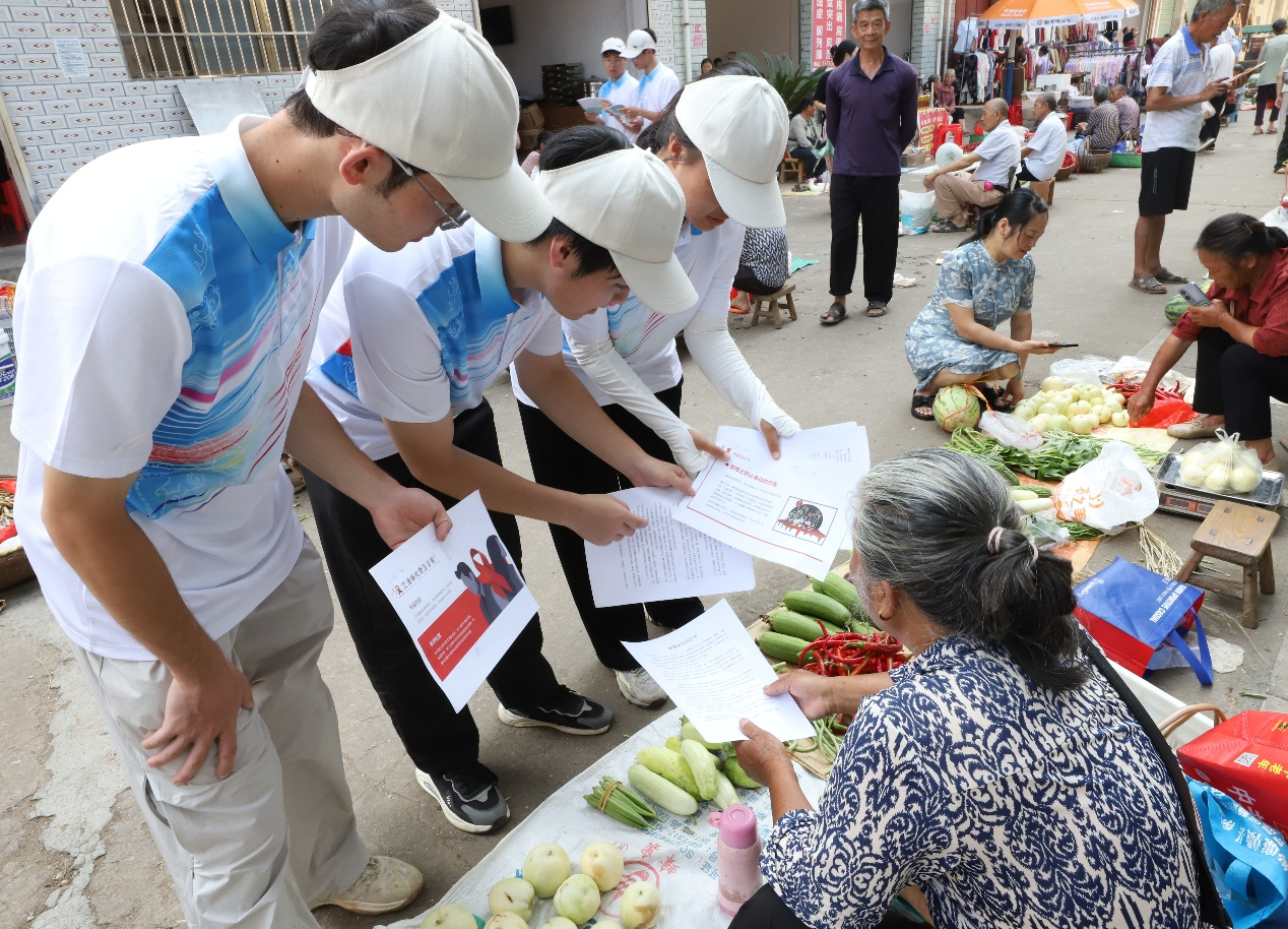 图为队员们在圩市向乡民普及禁毒防艾知识。李晓玲 凌俐 供图