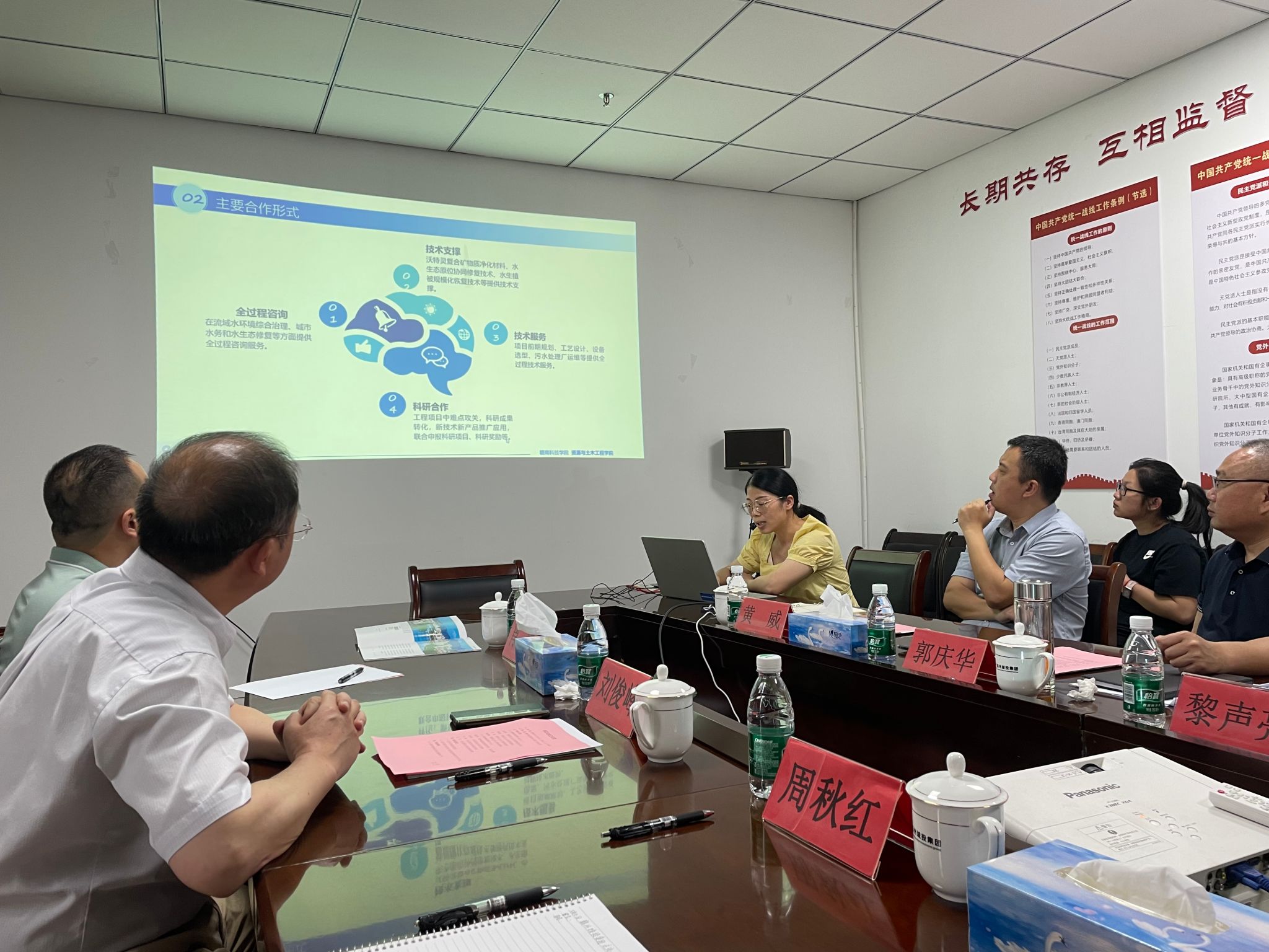 随后,资土学院周秋红博士汇报了学院科研团队在城市污水收集与处理、水环境综合治理、多源固废协同资源化处置及环境综合治理关键技术研究方面的科研项目及最新成果。