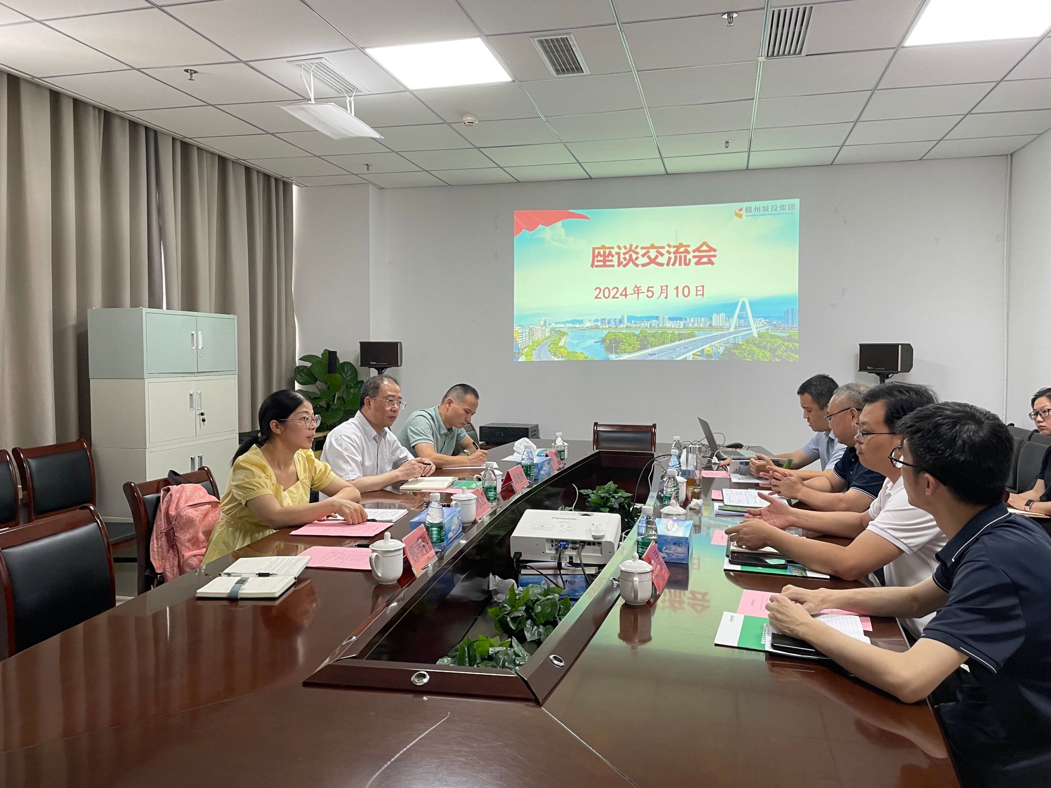 本网讯:5月10日上午,资土学院党委书记刘俊峰一行赴赣州城投集团访企拓岗及校企合作洽谈。本次访企拓岗主要以座谈会形式进行,赣州城投集团党委委员、副总经理郭庆华,集团党群部部长龙琪,生态投资公司执行董事黎声亮、副总经理黄威、技术部副经理王灵出席座谈会,我校资土学院周秋红、肖斌、郭孝翀三位博士陪同参会。