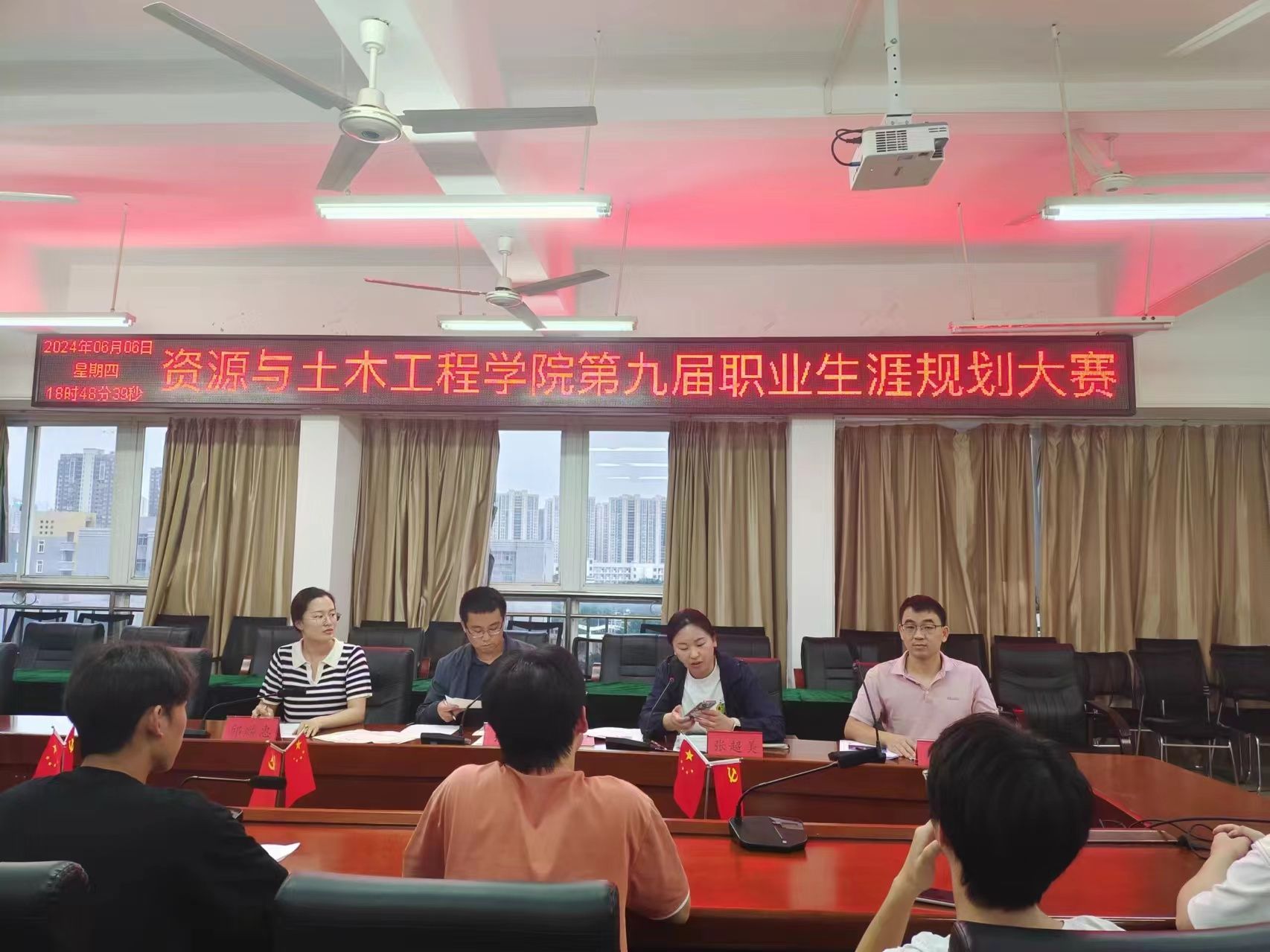 本网讯:为帮助大学生明确职业目标,引导大学生树立职业规划意识,提升职业生涯规划能力。6月6日下午,77779193永利官网集团于崇善楼Z713会议室举办大学生职业生涯规划大赛。资土学院张敏、张超美、邱麟惠、刘波四位辅导员担任评委。