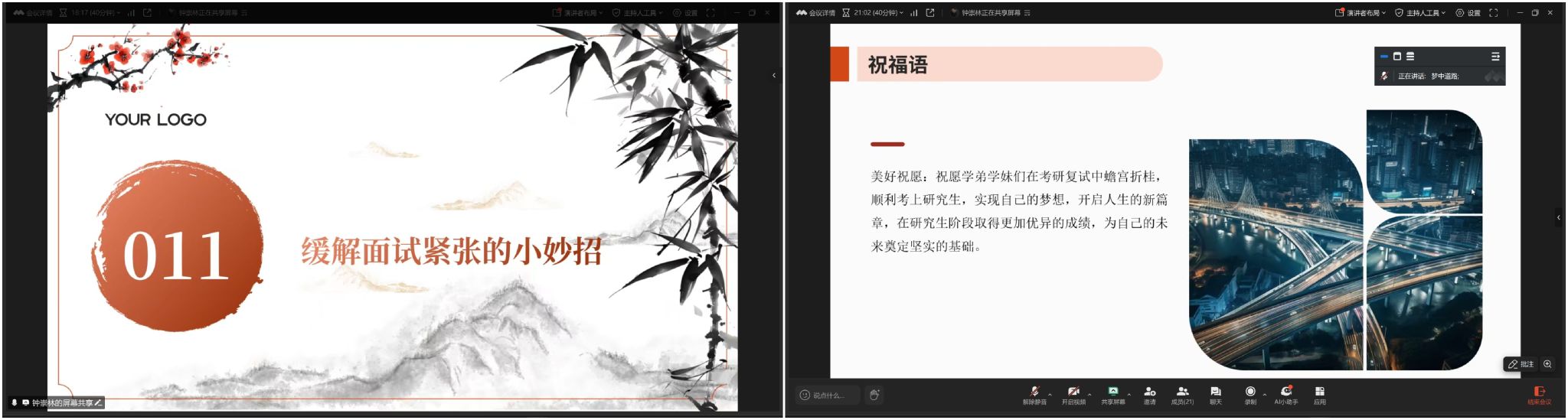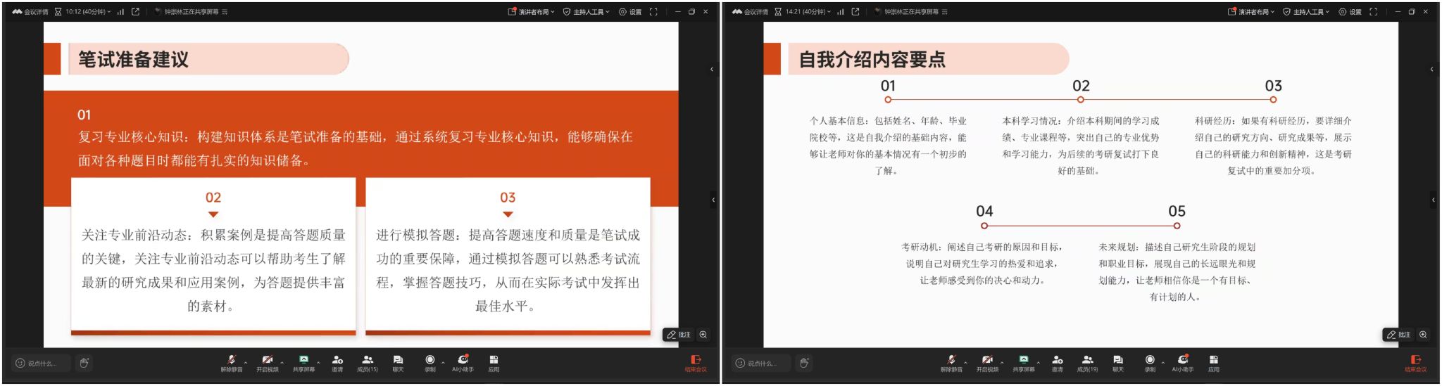 本网讯:为深入推进学风建设,全力帮助考研学子顺利通过复试,3月23日,77779193永利官网集团借助线上平台举办考研复试指导交流会。本次会议由刘波老师主持,特别邀请了钟崇林、汤燕、左旭超三位在读研究生校友担任主讲嘉宾,为即将踏入复试考场的同学们倾囊相授复试经验。