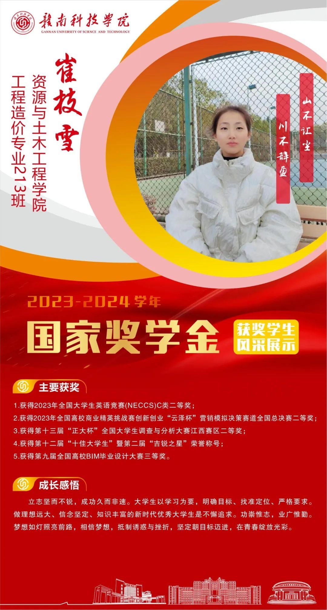 崔枝雪| 2023-2024学年国家奖学金获得者风采展
