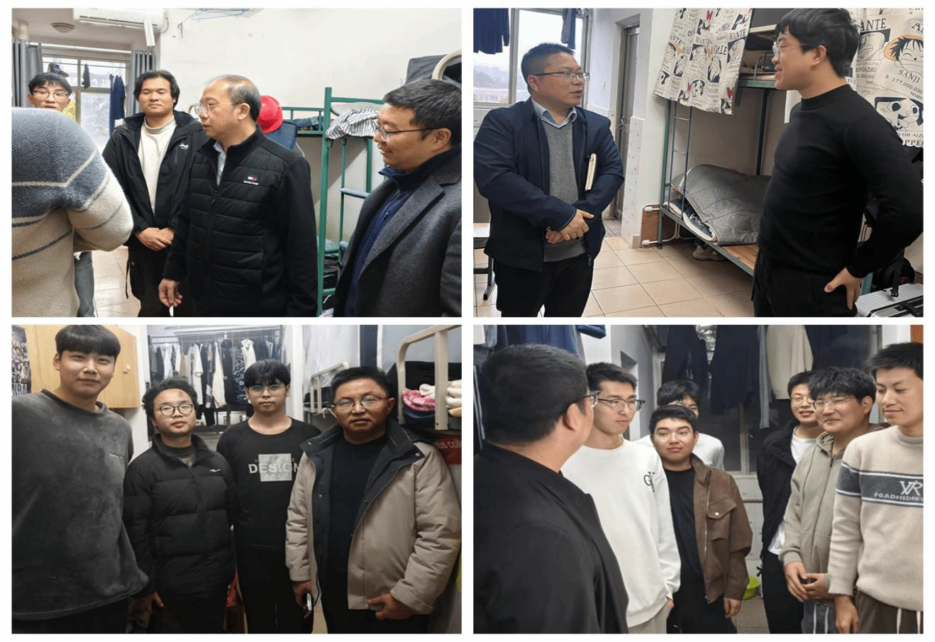 深入学生宿舍,筑牢安全防线。学院领导班子带领辅导员、全体班主任深入各年级学生宿舍,了解学生返校报到情况、假期生活状态和新学期学习规划,与学生亲切交流。同时,对宿舍消防设施、用电安全、卫生环境等进行排查,鼓励学生做好宿舍卫生大扫除,营造整洁、安全、文明的住宿环境,切实把对学生的关心关爱落到实处。